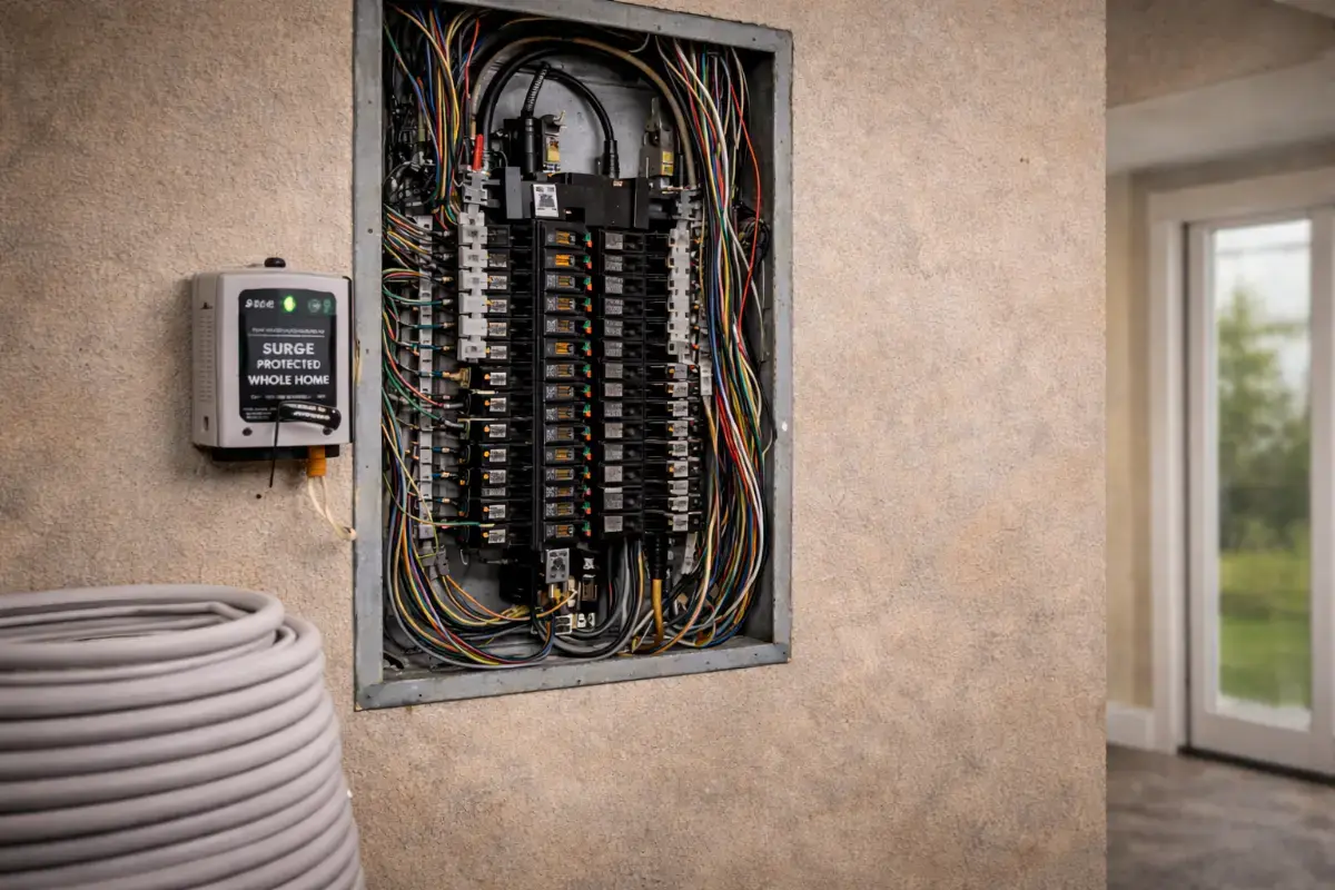 Modern appliances and home offices require more capacity. We install 200 amp panels, arc fault circuit breakers, and whole-home surge protection, keeping your system safe and scalable.